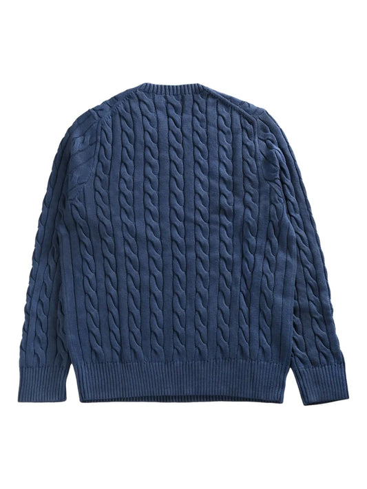 suéter de tricô trançado com logotipo bordado