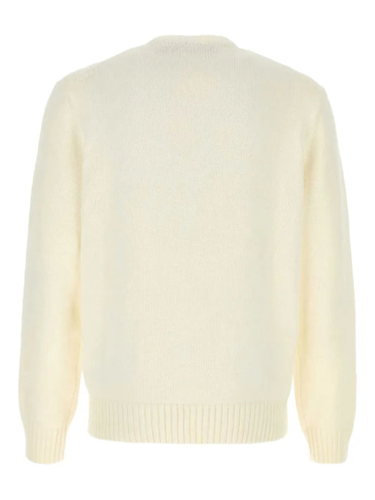 suéter de tricô trançado com logotipo bordado