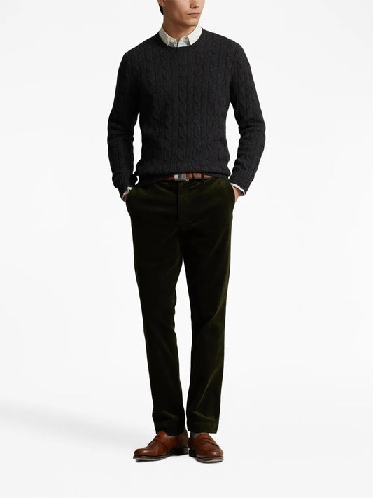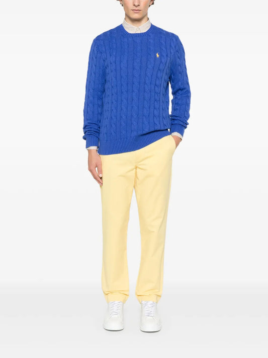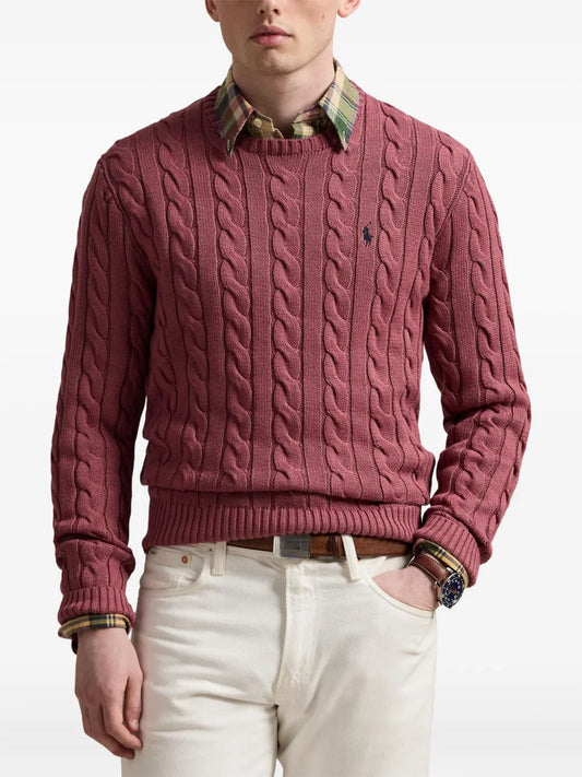 suéter de gola redonda em tricô trançado
