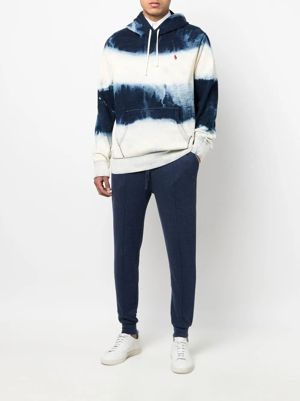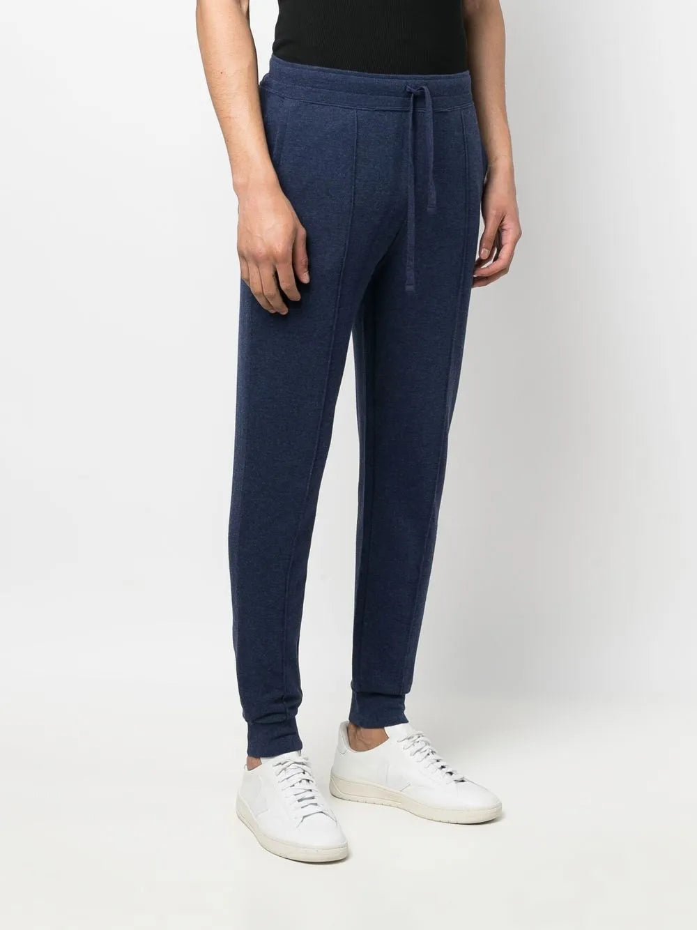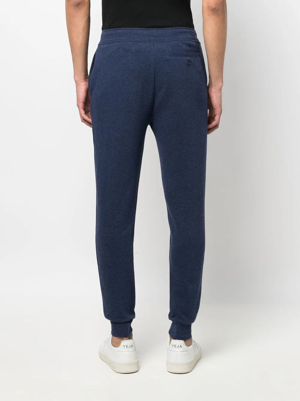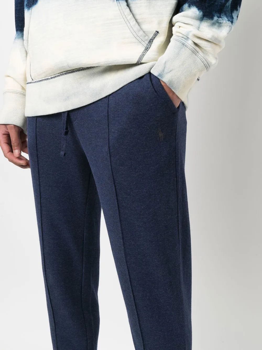 mistura de algodão azul marinho efeito mescla corte slim motivo Pony cós elástico com cordão tornozelos elásticos bolsos laterais