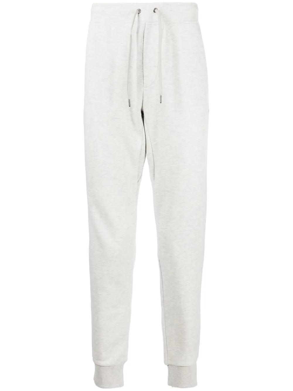 O motivo Polo Pony, assinatura da Polo Ralph Lauren, simboliza o artesanato, exigindo 972 pontos para ser bordado. Ele adorna a lateral desta calça esportiva cinza-claro para um acabamento exclusivo da marca.