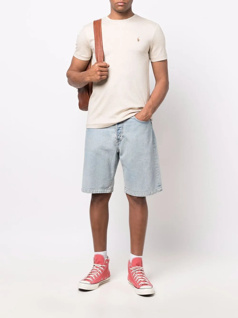 Polo Dune bege de algodão com estampa de pônei, gola redonda, mangas curtas, bainha reta
