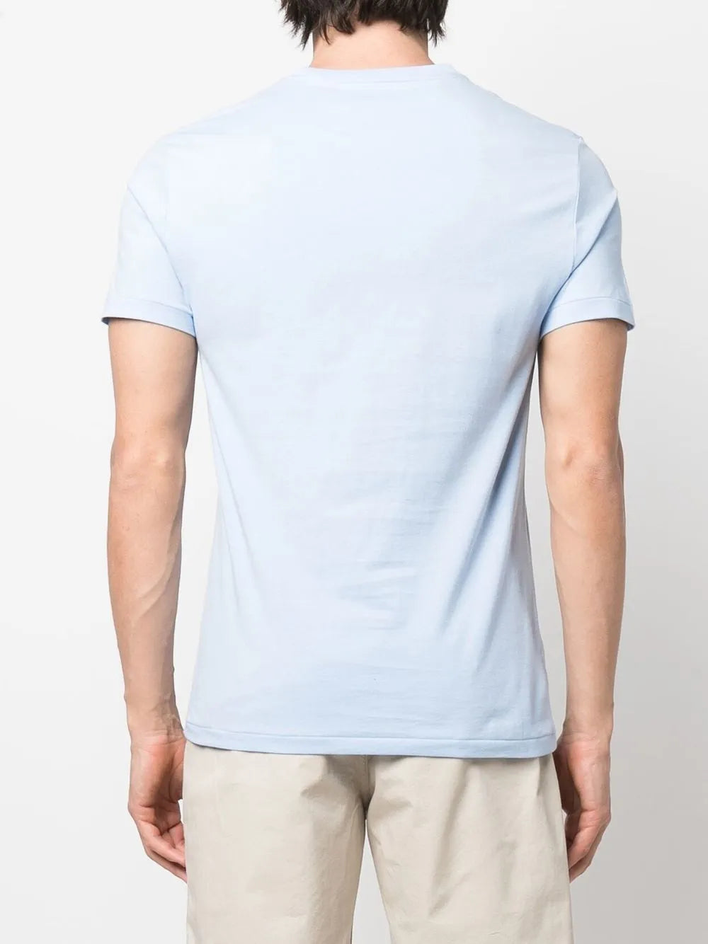 Polo Pony azul claro com estampa de algodão, gola redonda, mangas curtas e bainha reta