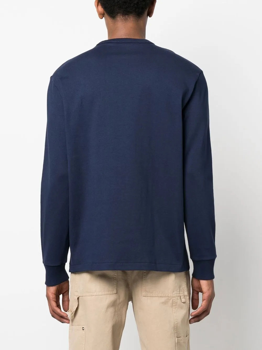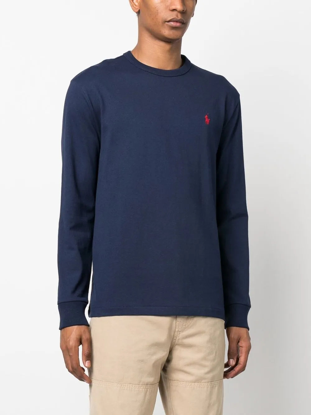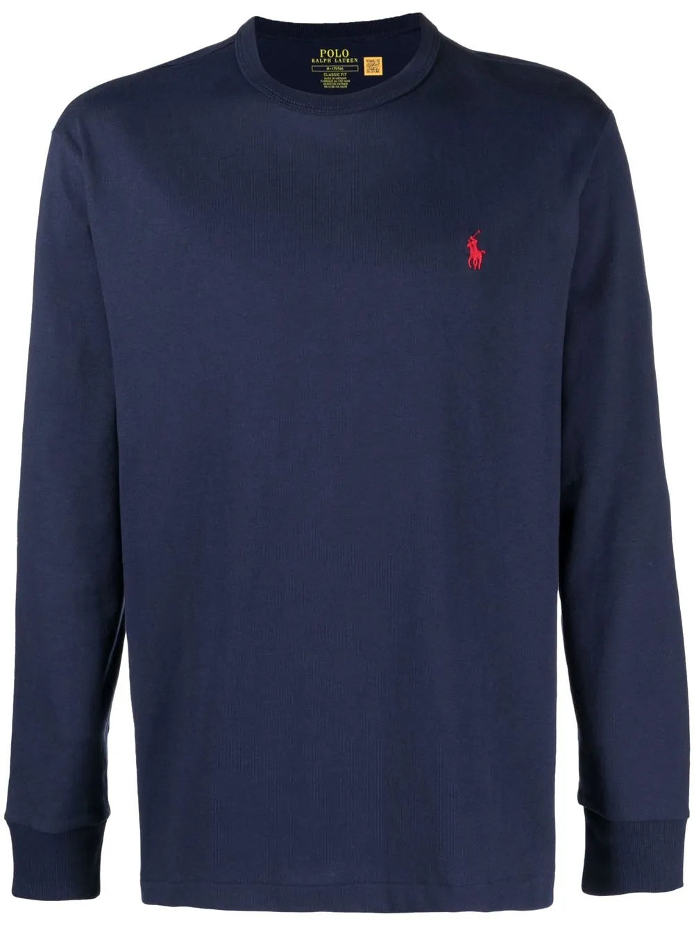Polo azul marinho/vermelho com estampa de pônei e gola redonda, mangas compridas, punhos elásticos e bainha reta