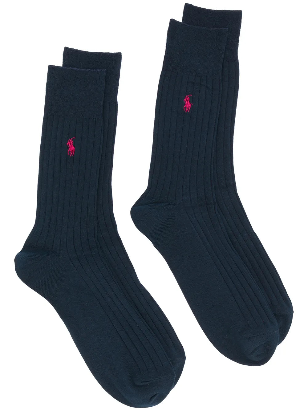 Meias caneladas de algodão azul-marinho com motivo de pônei da Polo Ralph Lauren, com malha canelada, logotipo bordado na frente e estilo slip-on.