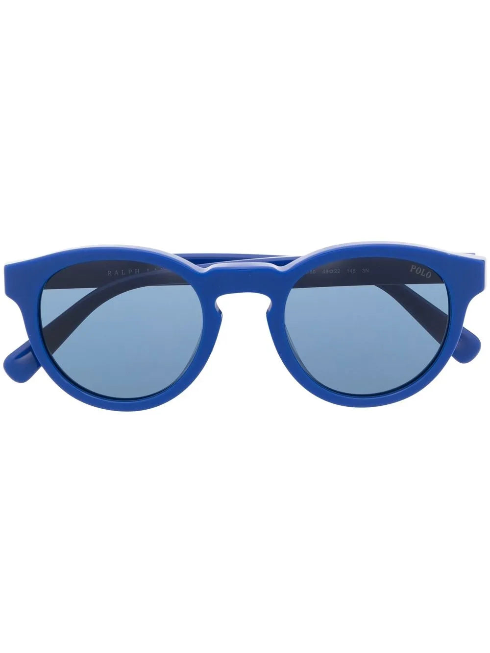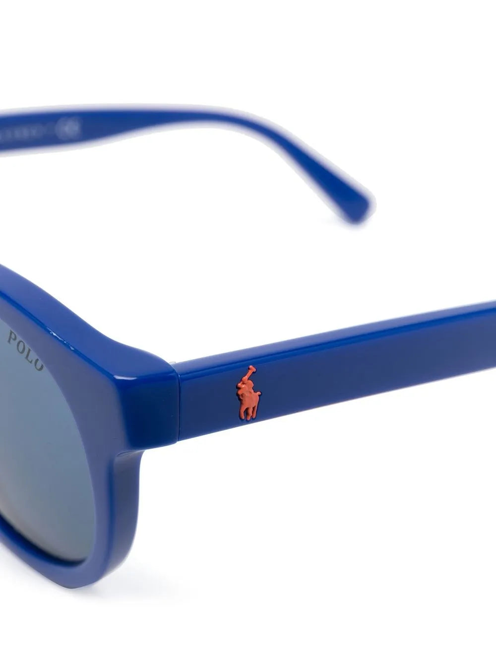 Armação redonda com estampa Polo Pony azul royal, lentes azuis e hastes retas, pontas curvas. Estes óculos vêm com um estojo protetor. Todos os óculos da FARFETCH são vendidos com armações sem grau.