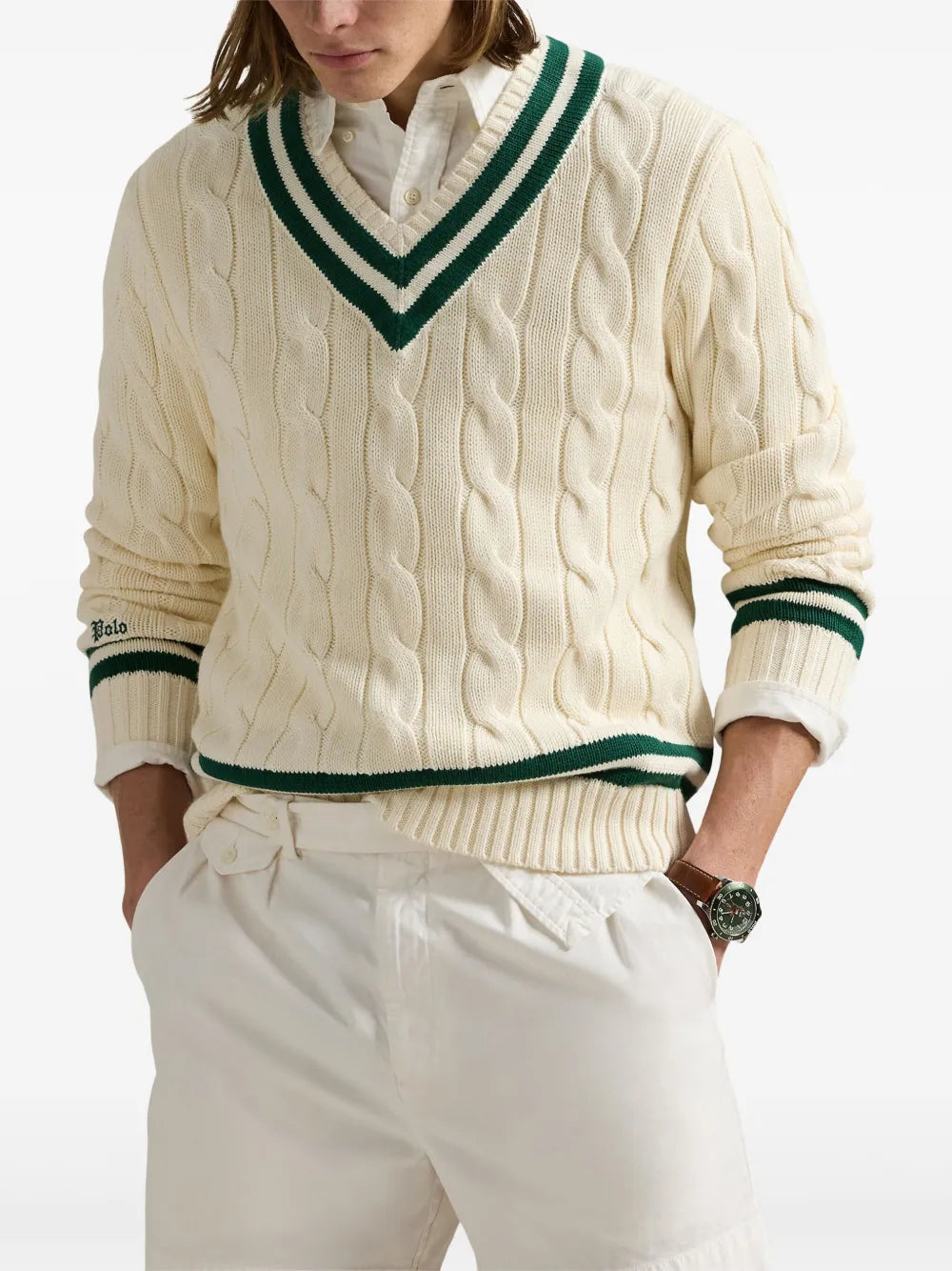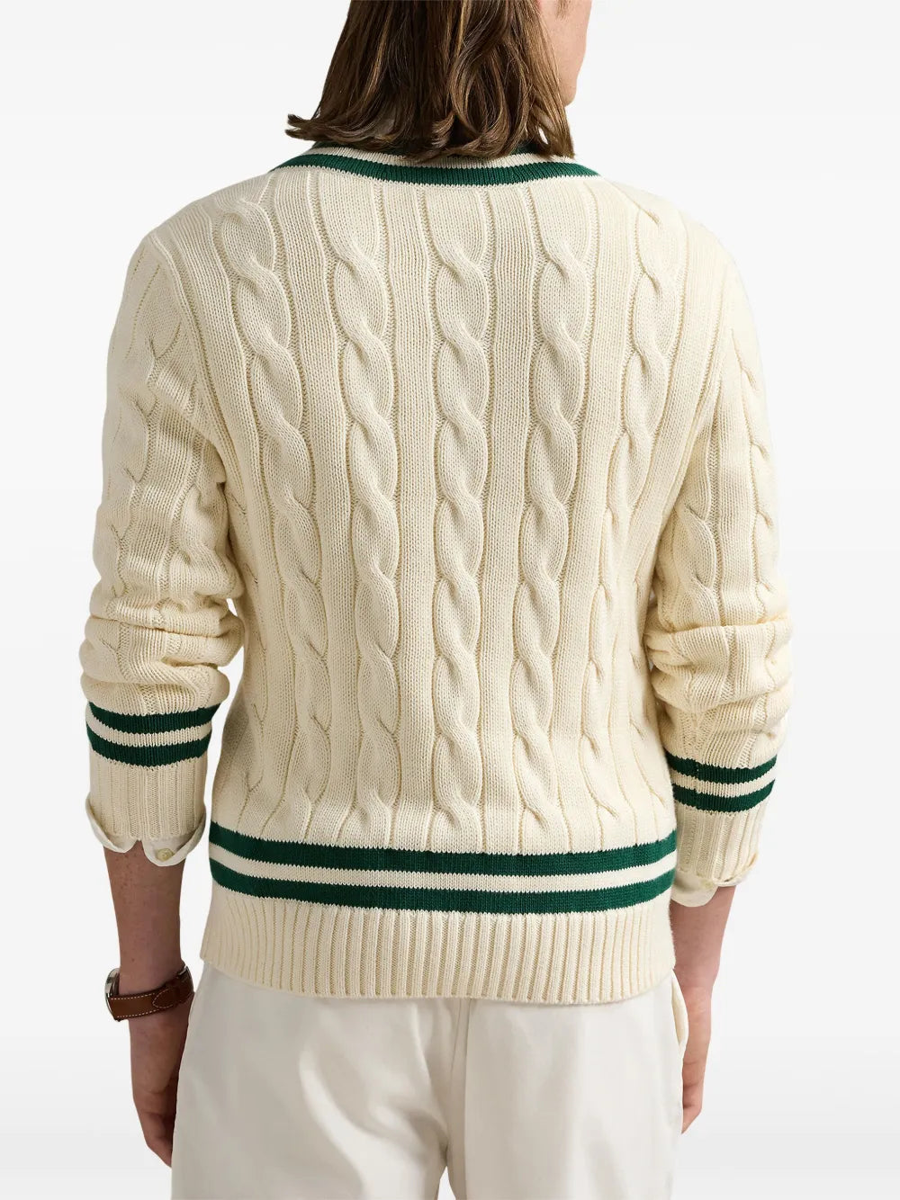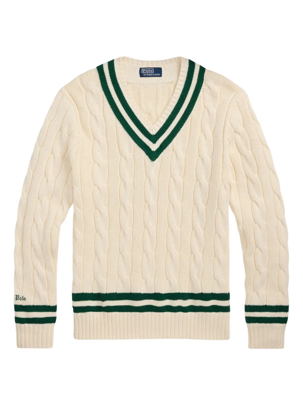 suéter de tricô trançado com logotipo bordado